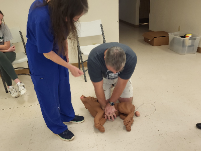 clinic is a two-hour drive away, the need for pet first aid training is critical. This hands-on seminar will cover accident scene safety, physical exam, restraint and handling, internal emergencies (e.g. poisoning, electrocution, seizures), external emergencies (e.g. snake bite, fractures, wounds), avoidance of animal emergencies, and basic first aid measures. Participants will utilize a dog CPR mannequin to practice CPR and the Heimlich maneuver. Proceeds from this program will be donated to a charity of the instructor’s choosing.