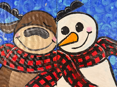 Create a heartwarming two-canvas winter masterpiece together! In this special Grown-Up & Me class, each pair will paint two 16x20 canvases that fit together to form an adorable snowman and reindeer cuddle scene. It’s the perfect holiday keepsake and a fun way to spend creative time with someone you love. This class is open to any twosome — adult/child, parent/teen, grandparent/grandchild, or even two adults who simply want to paint together. If a child is participating, one adult must be present per child to help with the project. No painting experience is needed. Our instructor will guide you both step-by-step, and all supplies are included. Cost: $40 per twosome. An adult is required on the registration. There will be a question during registration for the name and age of attending partner. Come enjoy a relaxed, festive painting experience and leave with art you’ll treasure for years!