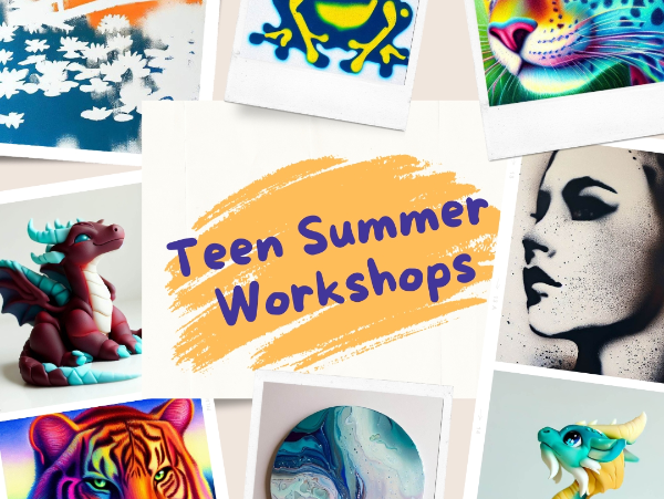 In our Teen Workshops, we will explore polymer sculpture, stencil art with acrylic and watercolor, color pencil shading, and the popular trend of pour painting in our 4 or 5 day workshops. You will have the opportunity to create your own designs in a supportive environment that fosters your growth as an artist. July 4-7 or August 14-18, 1:00pm to 3:30pm. Cost is $200 (4 day week), $250 (5 day week) with taxes extra. All materials included.