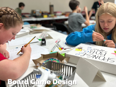 In this hands-on, collaborative, creative exploration class, student design their own board game. Students play their favorite games, learn the basics of board game mechanics and techniques, and develop their own game from concept to board and pieces design. Students are encouraged to embrace their ideas, collaborate with new friends, get creative through craft materials, and challenge themselves through play.
