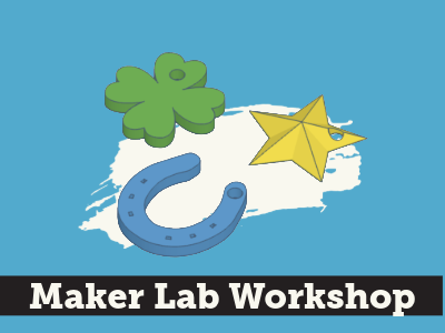 Design and create your very own good luck charm using Tinkercad! Pick what is lucky to you -- clovers, horseshoes, golden coins or more -- and get your masterpiece ready for the real world! Get ready to be a digital designer and a maker! Prints will be ready to pick up in the week following the workshop.
