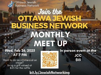 Join us to the first in Ottawa Jewish Networking Group lets build together community of professionals and entrepreneurs coming together to connect, collaborate, and support one another. Open to individuals across diverse industries, the group aims to foster meaningful relationships, share resources, and promote professional growth within Ottawa’s Jewish community. Through regular events and initiatives, it provides a platform for networking, learning, and strengthening community ties.