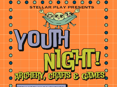 Give your kids a fun, supervised night out where they can hang out, play, and explore activities at their own pace. This easygoing evening is designed for youth who want a low-pressure, social environment. Participants can move freely between activities, choosing how they spend their time: All equipment and supplies are provided, and no experience is needed. Staff are present to ensure safety, guide archery activities, and support youth while allowing them to socialize, create, and explore independently. This event is perfect for parents who want their children to enjoy a safe, engaging, and flexible evening filled with fun activities and choice. Age: 10-15 yrs