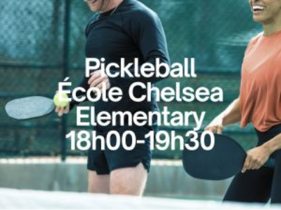 Le Pickleball est un sport de raquette qui combine des éléments de badminton, de tennis et de tennis de table. Offert à au Gym de l'école Chelsea Elementary. Avec 3 terrains disponibles pour jouer et un maximum de 18 joueurs à faire tourner, venez profiter de ce sport en pleine expansion! Les raquettes et les balles sont fournies (si requises). Ceci n'est pas un cours, mais du jeu libre entre joueurs. ______________________________ Pickleball is a racquet sport that combines elements of badminton, tennis and table tennis. Offered at the Chelsea Elementary School Gym. With 3 courts available for play and maximum of 18 players to rotate through, come and enjoy this fast growing sport! Rackets and balls available, if required. This is not a class, but free play with players.